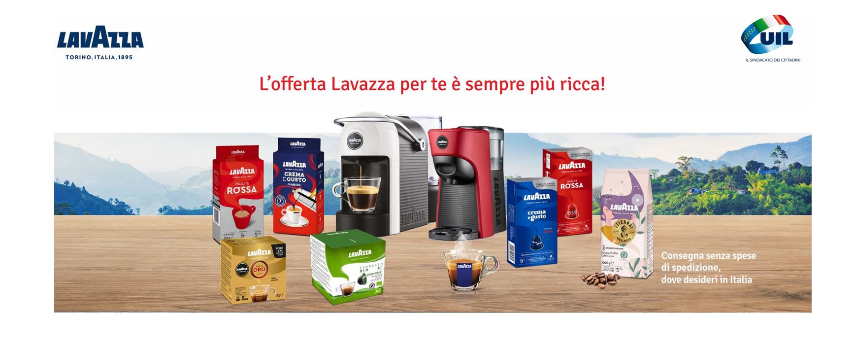 LAVAZZA ha rinnovato le sue offerte riservate per i tesserati UIL e loro familiari: sono ora acquistabili sia macchine espresso "A Modo Mio" (la nuova Tiny Eco e la "best seller" Jolie) che capsule (sia Lavazza che compatibili Nespresso e Dolcegusto) e anche caffè in grani per espresso e macinato per la moka. (ci sono ovviamente tutte le miscele più vendute, come la Lavazza ORO, Qualità Rossa, Crema e Gusto, Tierra e il Decaffeinato).