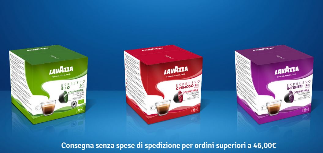E' dunque possibile acquistare (ma solo attraverso la pagina a noi dedicata sul sito Lavazza) il caffè in capsule "A Modo Mio", Cofanetti multigusto, capsule compatibili Nespresso, sacchetti di caffè in grani e macinato delle miscele più note e apprezzate. (Qualità Oro, Crema e Gusto, Rossa, Tierra! Bio ecc.).