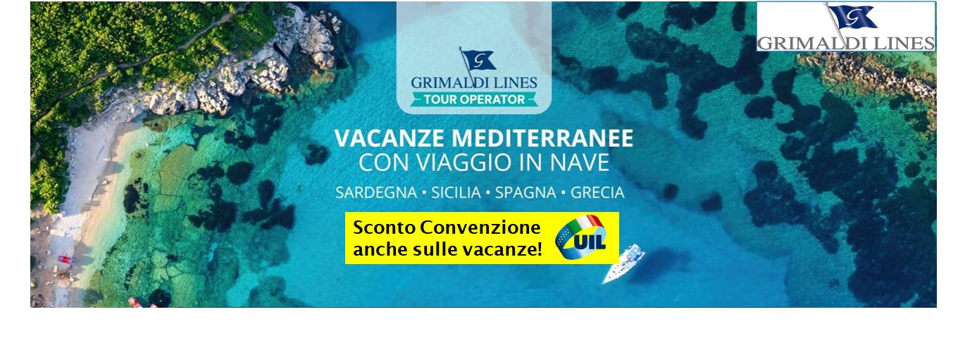 GRIMALDI LINES ci ha comunicato che, in via del tutto eccezionale, lo sconto del 10% previsto dalla Convenzione UIL sui biglietti dei traghetti sarà valido anche sui pacchetti Grimaldi Tour Operator!