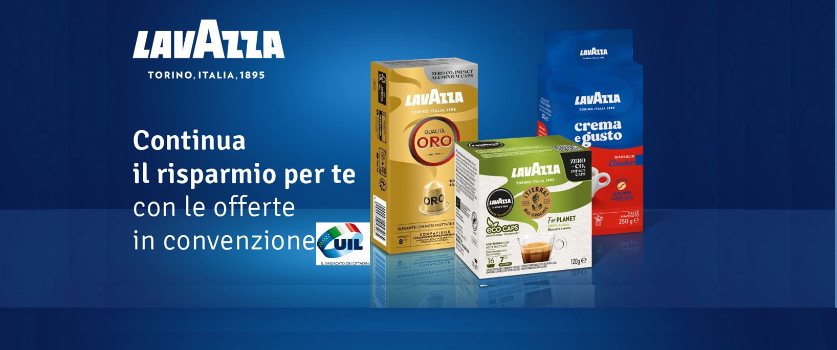 LAVAZZA ha rinnovato anche per il 2026 la convenzione riservata agli iscritti UIL per l'acquisto a prezzo agevolato di capsule " A Modo Mio", caffè in grani e macinato, macchine espresso.